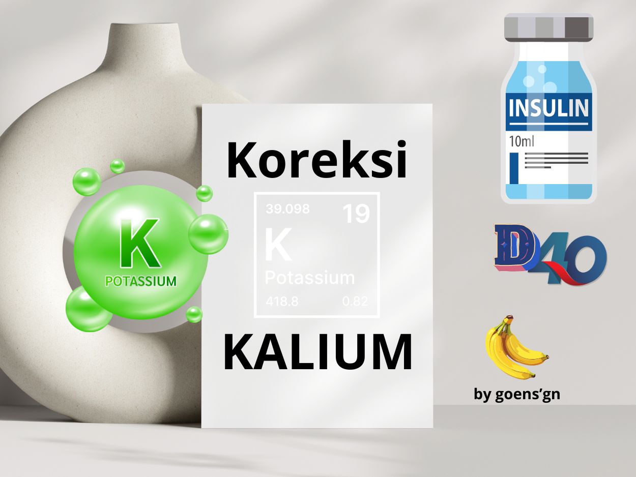 Koreksi kalium adalah tindakan untuk menyeimbangkan kadar kalium dalam darah, terutama jika seseorang mengalami hipokalemia (kadar kalium rendah) atau hiperkalemia (kadar kalium tinggi). Berikut adalah pendekatan umum untuk koreksi